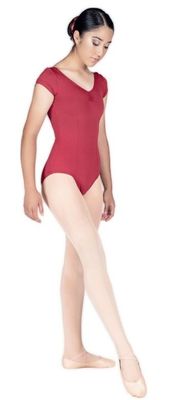 A micro dri leotard in Red with gathered neckline and scooped back. Short capped sleeves.