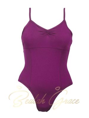 Port Leotard with Camisole style straps, and gathered neckline. Made from Micro Dri fabric